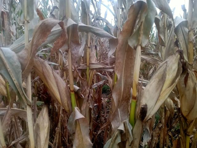 这不怨人家,因为我们这里的玉米在籽粒的充实期得了锈病,使得叶片干枯,玉米穗倒头朝下,甚至秸都干枯而倒伏了,早衰,玉米粒能充实饱满吗?