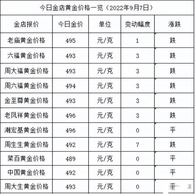 金价又跌啦!2022年9月7日各大金店黄金价格多少钱一克?
