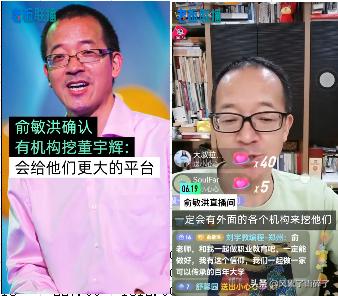 我想他一定不会离开新东方,要离开已经在新东方巨龙化蛇的时候他就已经离开了,在新东方最失意的时候还在,现在经过大家努力之下有一定起色的时候他一定不会离开。他不是演员,所以他的直播大都是真情流露,读书人可以是决绝的理性,也可以感性到任性,因为读书人自有读书人的风骨,该恪守的训诫虽千年而不绝,恰好他有。