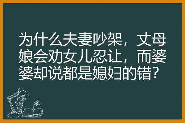 为什么夫妻吵架,丈母娘会劝女儿忍让,而婆婆却说都是媳妇的错?