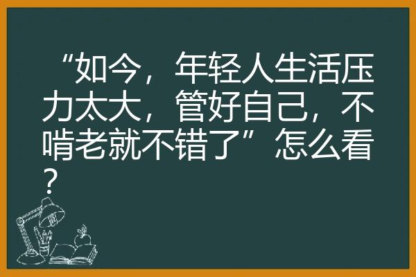 “如今,年轻人生活压力太大,管好自己,不啃老就不错了”怎么看?