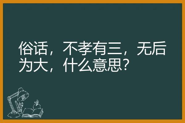 “不孝有三,无后为大”源自于古代思想家孟子的劝戒之言,大意是:一个人一辈子有三件事为不孝(专指男人),一是看到父母做事不妥也不劝说,二是自己不想做官以惠及父母,三是不成家或是成家没有男孩(无后)。这种观念在旧时确是做人的“铁律”!可是时至今日这种说法早就过时了!这是因为人类经过不断的进化、进步,思想观念也发生了根本改变:这个世界是由男人和女人所主宰的,二者缺一不可!男女在地位上是平等的!生儿生女一个样,女儿也是传家人!既然这样,那么“无后为大”的观点就没有它的市场了!