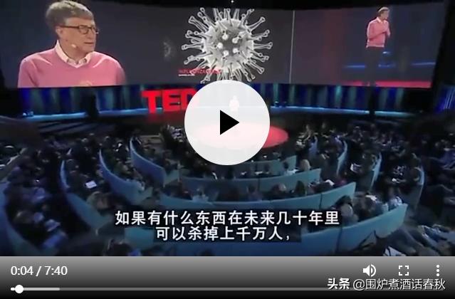 其实,这就是川普的支持者主导的一场闹剧!我们知道,比尔盖茨之前拒绝成为川普的经济顾问,而且两人还在政见上的想法很不一样,可以说是有一点过节。美国这次疫情如此严重,民众正好缺乏发泄的对象,所以阴谋家就把比尔盖茨很久之前的一次演讲给找了出来,以此来污蔑他。