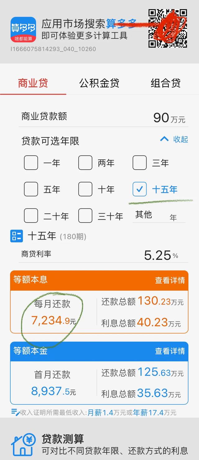 90万15年,等本,每月要还7200多,不过快上岸啦