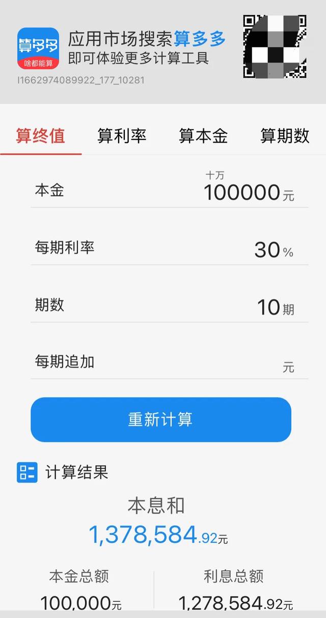 十年复利:10*(1+30%)^10=1,378,584.92元