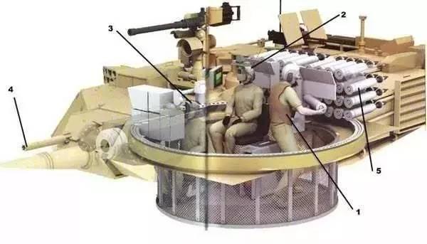 第一是美国M1“艾布拉姆斯”主战坦克,它没有自动装弹机,总共备弹55枚,其中44枚存储于炮塔尾舱的主弹舱内,8枚存放于车体的装甲弹舱,其余3发位于炮塔吊篮底板的防弹箱内。