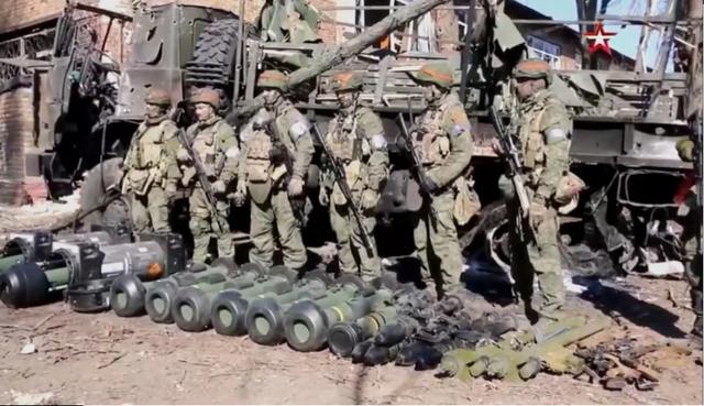 图为俄军在顿巴斯一场战斗中,缴获的大量乌军装备,其中有很多标枪、NLAW、毒刺等便携式导弹,以及狙击步枪、重机枪、炮弹、火箭弹。