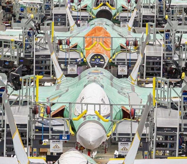 图为美国F-35战斗机的生产线,五代机研发涉及方方面面,机床只是其中一个小因素。