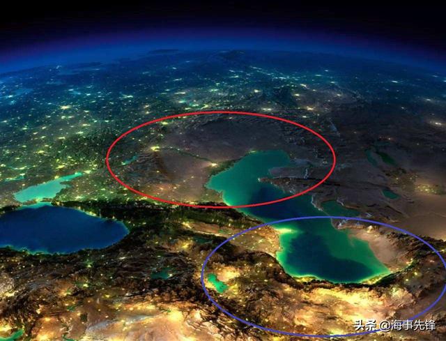 图中红圈内是俄罗斯的西南边陲,蓝圈内是伊朗,可见俄罗斯西南边陲非常贫瘠,和伊朗隔着里海,伊朗是俄罗斯的西南城墙。