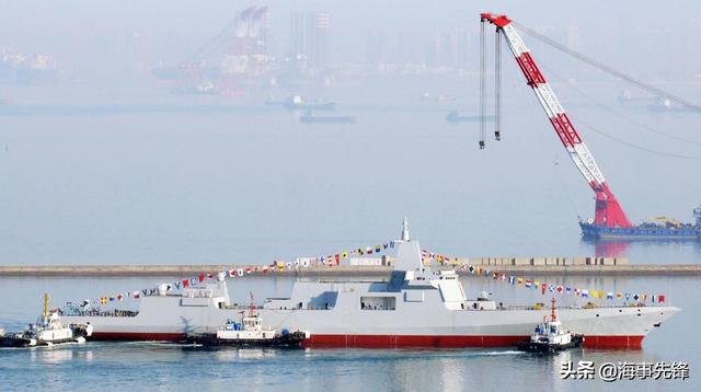 图为本月底才刚刚下水的055型驱逐舰6号舰。