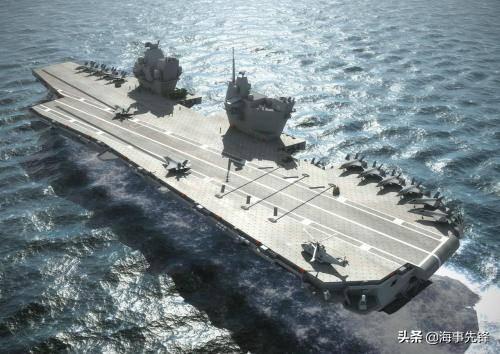图为“伊丽莎白女王”级航母最早的设计,使用弹射器和阻拦装置,价格高昂。