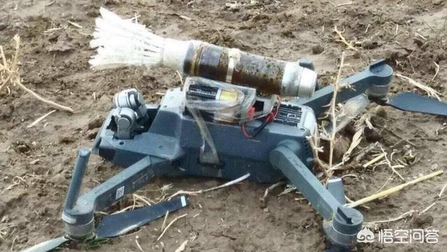 图为挂载羽毛球炸弹的大疆无人机,这样小的一个炸弹,实际上已经有手榴弹的威力了。