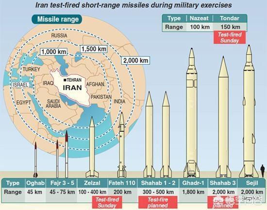 图为伊朗弹道导弹覆盖范围示意图,伊朗的导弹威胁确实是西方一个头痛的事情。