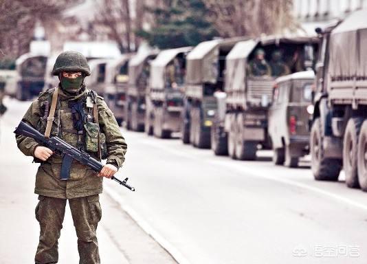 图为小绿人进入克里米亚,当时俄军进入的时候没有打出旗号,但是组织度非常高,这支没人知道哪里来的部队,迅速控制了克里米亚局势。