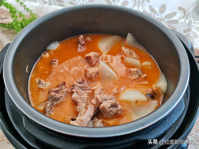 答:........这里这一步也是很多新手同学容易犯错的一步,其实原理同样很好理解,因为牛腩肉本身肉质是比较硬的,如果直接将胡萝卜和土豆加入到牛腩肉内一起下入高压锅炖煮,那么等牛腩炖软时,胡萝卜和土豆可就会被炖的稀烂,不但看起来毫无美观性可言,食用时的口感体验也同样很差,因此胡萝卜和土豆需要在牛腩炖软一次后才加入炖煮为佳。