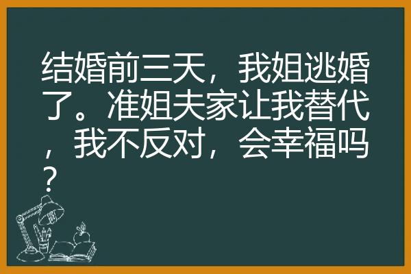 结婚前三天,我姐逃婚了。准姐夫家让我替代,我不反对,会幸福吗?