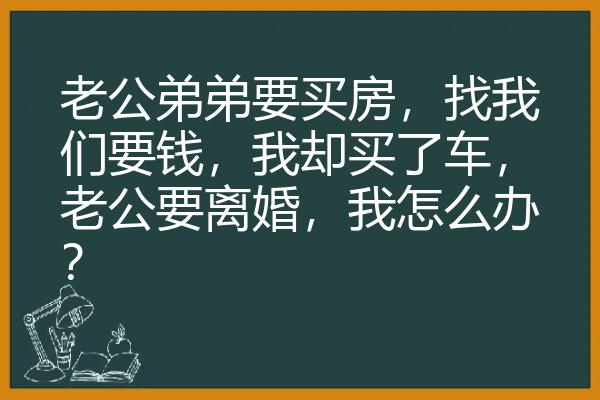 老公弟弟要买房,找我们要钱,我却买了车,老公要离婚,我怎么办?