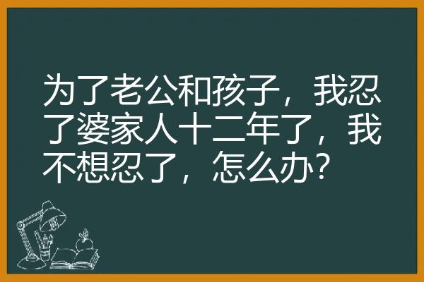 为了老公和孩子,我忍了婆家人十二年了,我不想忍了,怎么办?