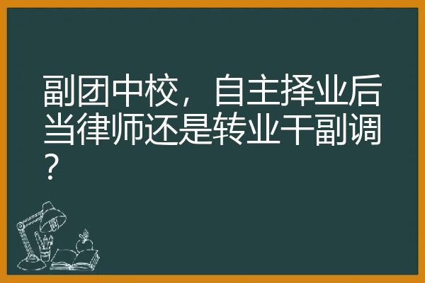 我们来做个简单比较,一家之言,不具权威!在青岛副团转业任副调或者区级副局(副处)的话,工资大概在8000多元,年终的精神文明奖大概是3--6万之间,车补、住房公积金、社保之类的我没统计过,总体加起来大概在20万上下;自主择业副团的退役金+住房补贴,大概每年在14-15万左右,一个普通律师的年薪至少也得10W--20W左右, 而且随着经验和阅历的增长,律师的薪资会越高,如果单独创业,那收入就不是工资问题,至于副处公务员与律师所承担的责任和风险压力也是不一样的,所以,副团自主能成为律师,那真是最佳选择,您怎么认为?欢迎评论区交流。