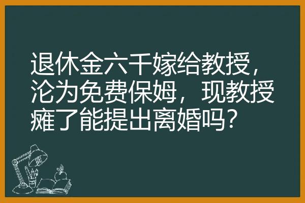 退休金六千嫁给教授,沦为免费保姆,现教授瘫了能提出离婚吗?