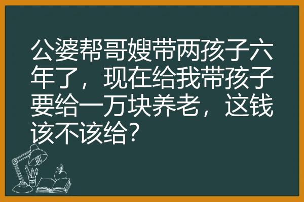 公婆帮哥嫂带两孩子六年了,现在给我带孩子要给一万块养老,这钱该不该给?