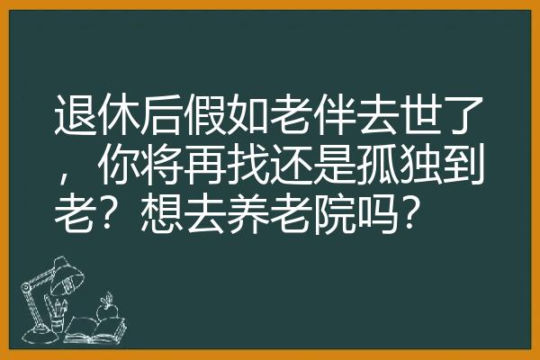 退休后假如老伴去世了,你将再找还是孤独到老?想去养老院吗?