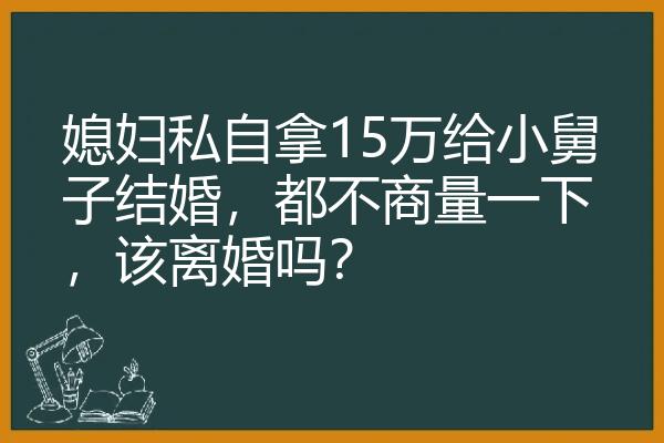 媳妇私自拿15万给小舅子结婚,都不商量一下,该离婚吗?