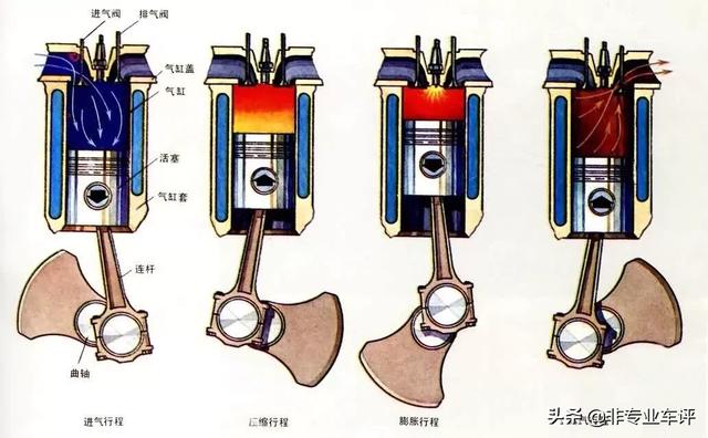 基础知识燃油动力汽摩均装备「活塞往复循环式·内燃式热机」,这是一种以燃烧燃油产生内能,将这种能量转化为推动活塞运转的动力的机器。活塞通过连杆与发动机曲轴连接,曲轴其实就是内燃机的的动力输出轴,一般为通过飞轮与离合器将动力输入到变速箱再到车轮。