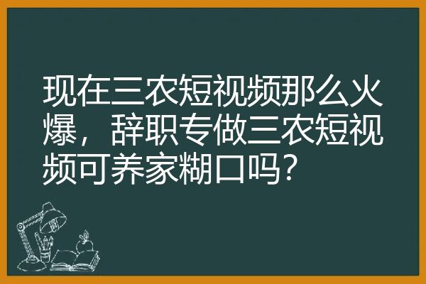 不可否认,现在的短视频确实很火,像比较出名的“巧妇九妹”“农村四哥”,可以说是在三农短视频中相当有名气的了,年入百万也不足为奇。但是如果说是专门辞职做短视频,这个还需要慎重考虑。有句老话说的很对,第一个吃螃蟹的人混的风生水起,后面跟着吃螃蟹的只能吃些泥和水。头条微博抖音等都给三农短视频提供了很好的平台,但是反观每天有上万的人都在发短视频,但是真正有名气能火起来的也就那么几个。短视频并不是如我们看到的那么简单光鲜亮丽,他们背后往往都是有团队在支持的,就拿当红的“巧妇九妹”来说吧,人家的侄儿子是名牌大学毕业来帮她做幕后运营的。而且三农短视频是一个需要长时间输出的信息,你要有好的一个主题并且可以长时间来运作的。如果真的喜欢拍短视频,我个人觉得可以先学着怎么拍好视频怎么吸粉,但是专门辞职来做这个还是有的冒险的,当然如果你有一定的经济基础,也有团队,那也可以放手尝试下。