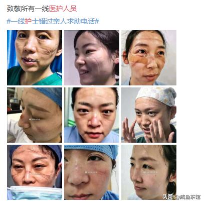 再来看我们的可爱的医务工作者,他们穿着防护服、戴着口罩,一下子就是8小时不吃不喝,甚至几夜几夜地不睡,都是为了病人的治疗与康复,等到稍微能够休息了,脱下防护服、脱下口罩,身上、脸上都是衣物留下来的痕迹,有些医务人员由于长时间戴口罩,脸都被勒出了血痕。如果让明星也这么长时间勒着脸估计不会愿意,脸弄丑了可不行。