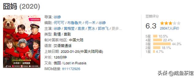 豆瓣6.3分看起来不高,但这种领奖台式评分(中间高两头低)的格局,是因为前期评分的人大多是专业影评人或者豆瓣老用户,对于电影质量要求非常高。而且《囧妈》现在已经放弃院线竞争,片方也不会有任何刷好评的营销团队操作,所以没有高分区的轰炸。但就是这种纯天然的口碑评价下,依然有及格线以上的得分,那就足以说明《囧妈》是一部合格的商业片。