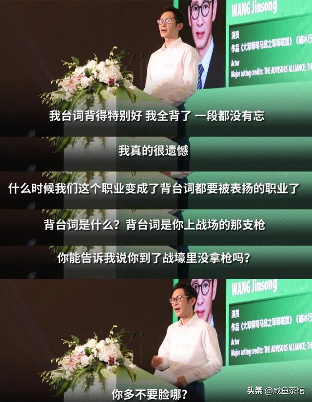 “什么时候演员成了一个背台词都要被表扬的职业了?背台词是你上战场的那支抢,你能告诉我说你到了战壕里没拿枪吗?你多不要脸哪?”以上是老戏骨王劲松先生在某次论坛上的发言,被媒体怒呛小鲜肉。