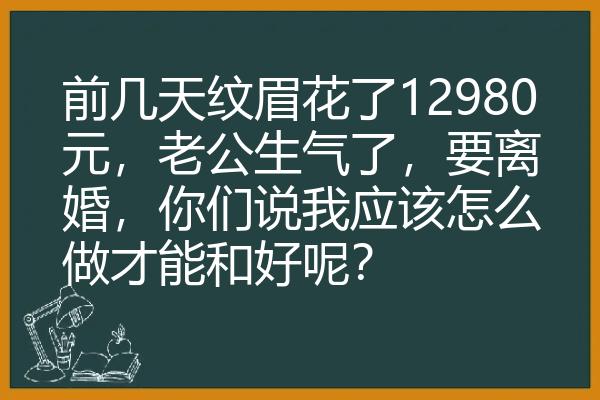 前几天纹眉花了12980元,老公生气了,要离婚,你们说我应该怎么做才能和好呢?