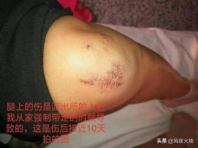 派出所四位民警冲进他们家里,进行拘留。他们要求解释清楚,却被强行拉扯,派出所所长多次扇她巴掌,拽她头发,并且说她“挺牛逼”,并强行塞进车里,在派出所戴上手铐,接受审讯。并且要求他们承认上访。说他们寻衅滋事。他们从来没有受过如此屈辱。此后当地的教育局找她丈夫多次谈话,并被撤职。