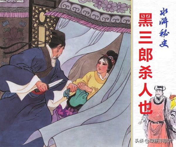 阎婆惜见到了反贼晁盖写给宋江的书信,和晁盖送给宋江的银两。宋江索要招文袋不成,手持解手尖刀,一刀杀了阎婆惜。