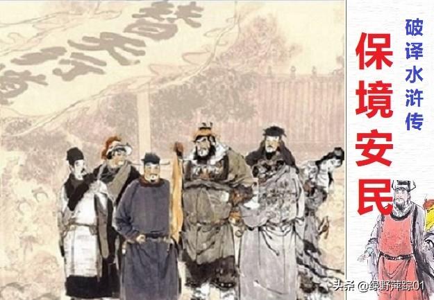 梁山好汉此时的“替天行道”就隐含着抗金保境的寓意,北宋都灭亡了,“天子”被拘押到五国城坐井观天,无国君可辅,亦无宋国可保,梁山好汉便按照一贯“秋毫无犯”的做法,“保境安民”。
