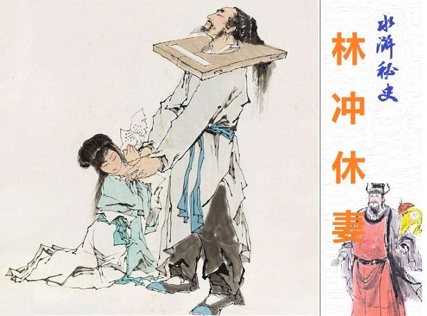 林冲执手对丈人道:“泰山在上,年灾月厄,撞了高衙内,吃了一场屈官司。今日有句话说,上禀泰山:自蒙泰山错爱,将令爱嫁事小人,已至三载,不曾有半些儿差池。虽不曾生半个儿女,未曾面红面赤,半点相争。今小人遭这场横事,配去沧州,生死存亡未保。娘子在家,小人心去不稳,诚恐高衙内威逼这头亲事;况兼青春年少,休为林冲误了前程。却是林冲自行主张,非他人逼迫。小人今日就高邻在此,明白立纸休书,任从改嫁,并无争执。如此林冲去的心稳,免得高衙内陷害。”