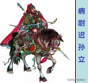 孙立出场时,书中原文如下:“孙提辖下了马,入门来,端的好条大汉。淡黄面皮,落腮胡须,八尺以上身材,姓孙名立,绰号病尉迟;射得硬弓,骑得劣马,使一管长枪,腕上悬一条虎眼竹节钢鞭,海边人见了,望风而降。怎见得?有诗为证:胡须黑雾飘,性格流星急。鞭枪最熟惯,弓箭常温习。阔脸似妆金,双睛如点漆。军中显姓名,病尉迟孙立。”