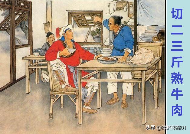 遗憾的是,无论按酒、下饭菜,施耐庵都没写吃的是什么,有没有牛肉呢?别急,等鲁达到雁门县时,施耐庵便马上要上菜了。