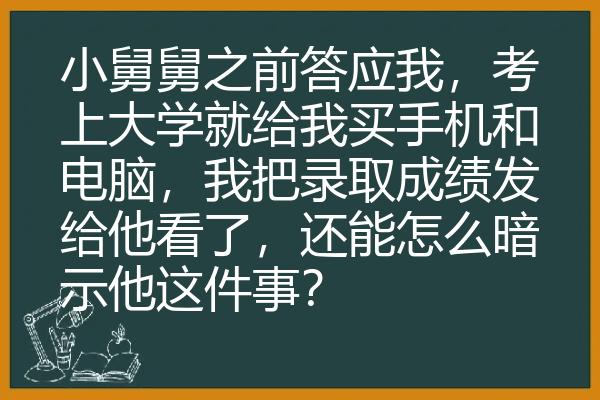 小舅舅之前答应我,考上大学就给我买手机和电脑,我把录取成绩发给他看了,还能怎么暗示他这件事?
