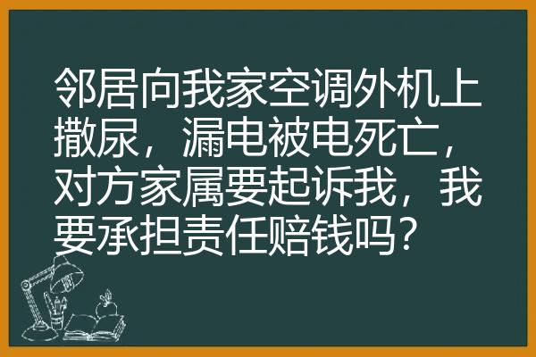 邻居向我家空调外机上撒尿,漏电被电死亡,对方家属要起诉我,我要承担责任赔钱吗?