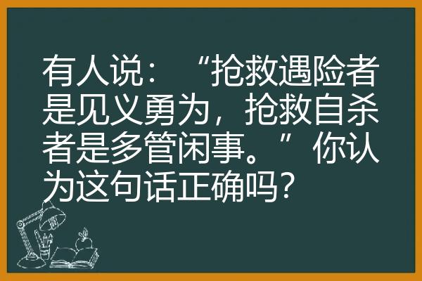 有人说:“抢救遇险者是见义勇为,抢救自杀者是多管闲事。”你认为这句话正确吗?