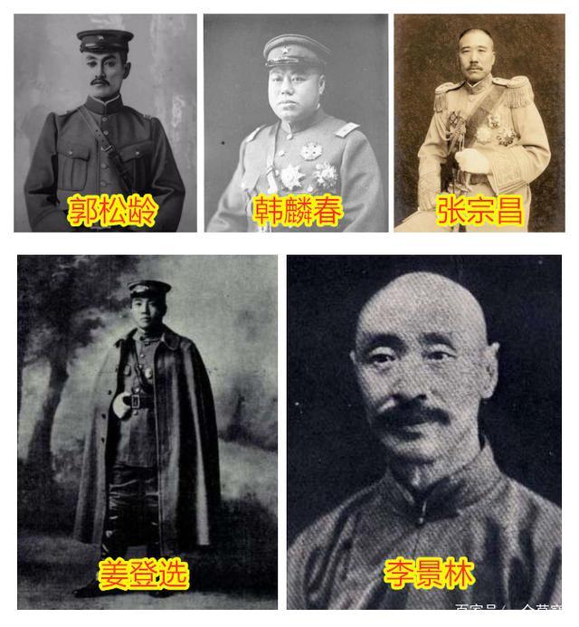 狗肉将军张宗昌,倒戈反奉的郭松龄,剑术大师李景林,杨宇霆的心腹爱将姜登选,韩麟春。