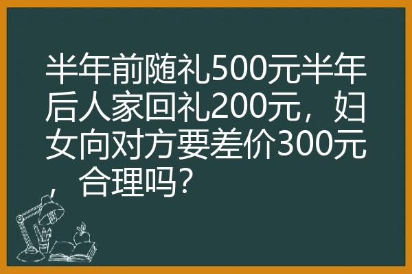 半年前随礼500元半年后人家回礼200元,妇女向对方要差价300元,合理吗?