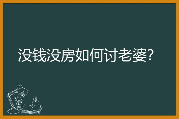 这个问题很简单,没钱没房如果自身条件较好可去当上门女婿,上门女婿难找,只要放下世俗(当上门女婿让人看不起)很容易找到老婆。