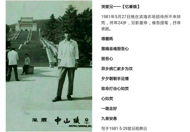 1981年5月27日傍晚,我四爷家24岁堂哥在异地猝死,得知噩耗如晴天霹雳,四爷四娘瞬间精神崩溃,多次昏迷晕倒,在治丧期间更是人力交瘁欲哭无泪,从此后精神恍惚茶饭不思,整天以泪洗面……