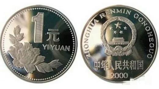 这枚硬币又叫2000年牡丹一元,本来这个系列的一元硬币,是发行于1991一1999年,正面采用国花牡丹图案,象征雍容华贵,采用钢芯镀镍材质,背面是国徽图案。2000年的时候,央行己经发行了新版的菊花图案一元硬币,按道理,2000年的牡丹图案一元硬币应该不再生产发行,但造币厂又生产了少量2000年的老版牡丹硬币,装桢在套装币中,它们没有流通发行,数量极少,到目前将近1000元/枚。