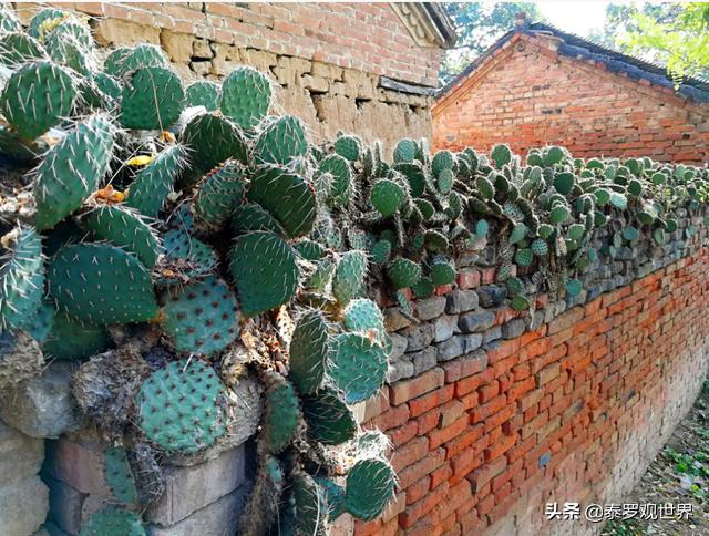 此外,仙人掌韧性很好,一旦种植后,它的根茎就会紧紧地固定住墙体的土,农民们在墙头上种仙人掌,还能有效地保护墙头不受到雨水的冲刷,防止墙体倒塌。