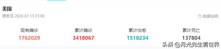 美国疫情现状截止到2020年7月24日,美国累计确诊新冠病毒人数已经达到417万余人,累计因新冠病毒死亡人数达到14万余人。在前面就出现过单日日增八万余例确诊病例的恐怖数据。可以说,这是对美国医疗体系的一次十分严峻的考验。而今的中国,新冠疫情在中国政府和广大医务人员的不懈努力下,已经得到基本控制。复工、复学工作得到有序开展。