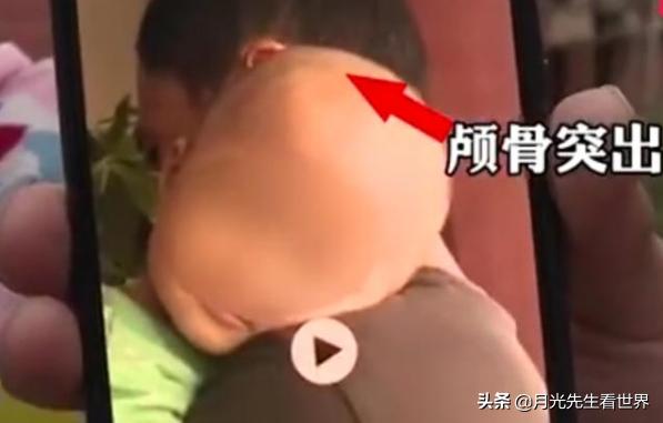 这两年孩子一直喝这个固体饮料,而没有得到应有的营养补充,所以严重营养不良造成佝偻病,前额凸出成“大头娃娃”。